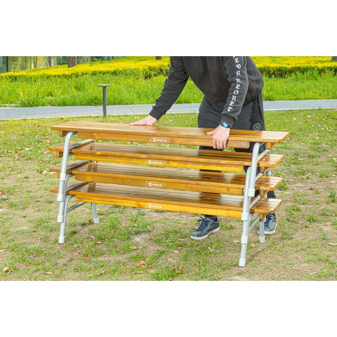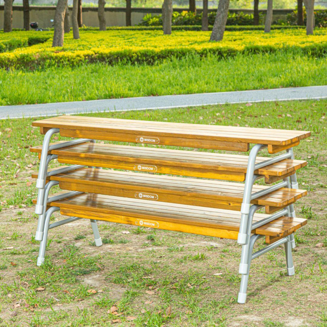 Een vaste zitplek in de buitenruimte ondersteunt groepsmomenten, korte instructies en zelfstandig werken. Deze stapelbare buitenbank van 150 cm maakt het mogelijk om buitenruimtes flexibel in te richten voor wisselende groepsgroottes.